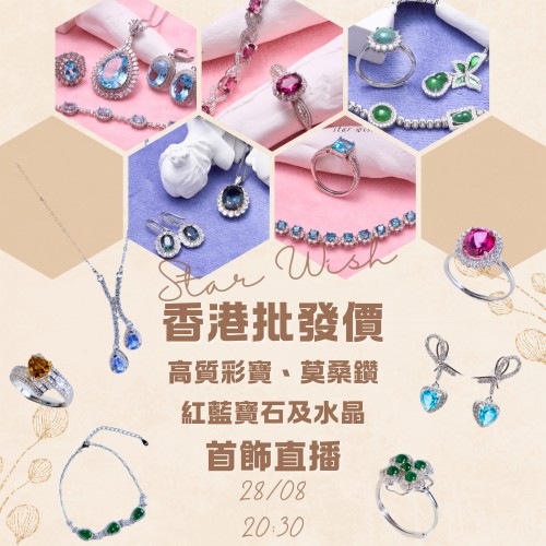 香港批發價高質彩寶、莫桑鑽、紅藍寶石及水晶首飾直播 |日期:28/08 |時間:20:30