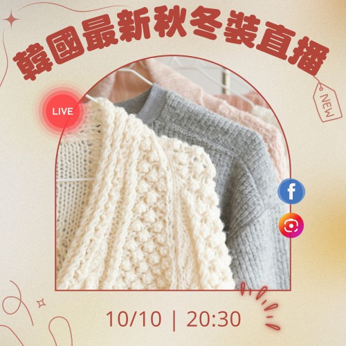 韓國最新秋冬裝直播 |日期: 10/10 |時間:20:30