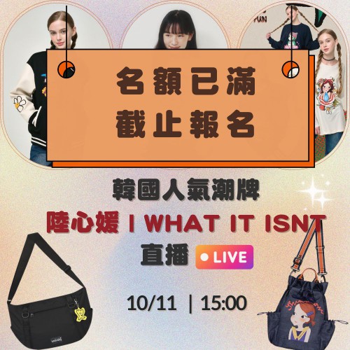 陸心媛 + WHAT IT ISN'T 韓國潮牌直播第二團報名 |日期:10/11 |時間:15:00